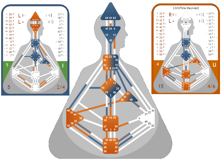 Beim zweiten Beispiel wars so ein Rundumpaket – meinen Kanal der Übermittlung (44-26) – runter zu brechen in die Emotionalität durch den Kanal der Gemeinschaft (37-40) – und dann noch weiter gehen mit dem elektromagentisch aufgebauten Kanal der Feinfühligkeit (19-49) – und ja, ich wusste jedes Mal, wenn irgendwas nicht stimmte – es hatte zwar nicht unbedingt immer was mit mir zu tun – aber ich merkte es, wenn er „unrund“ war – auch, wenn ich ihn nicht persönlich traf.