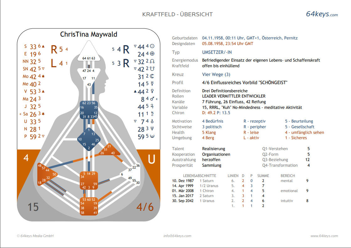 Ich arbeite mit 64keys – wir haben etwas andere Bezeichnungen als das klassische Human Design System – aber das erkläre ich dir auch in den jeweiligen Videos – und auch immer wieder mal in den BlogBeiträgen, wenn es um die Basics geht.