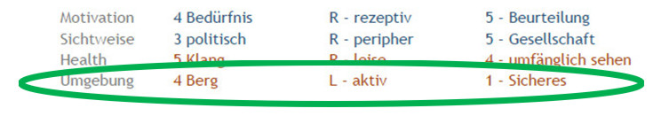 - Farben 4 bis 6 = Qualität der Landschaft = was man sieht, wenn man hinaus schaut