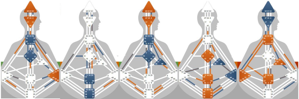 Wobei – wenn ich mir die Veranlagungen meiner „Problemfälle“ so anschau – gibts da auch oft ein definiertes Tor 45 = Herrscher – ohne den Gegenpart von 21 – die wollen dann manchmal umso mehr HerrscherIn sein, und haben aber noch weniger fundierte Basis – weil eben kein definiertes Tor 21 – wobei