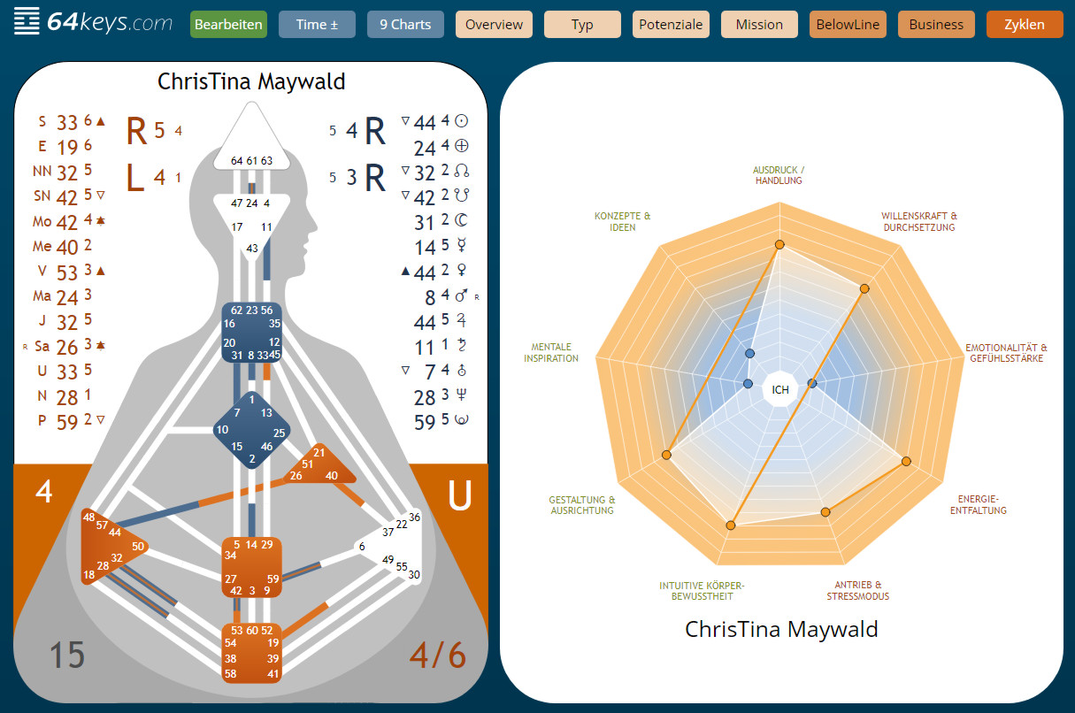 - links = klassisches Human Design System – konkret ein Ausdruck aus der MMI Software von JovianArchive