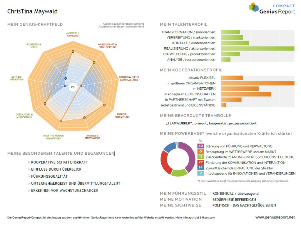 Später ver.änderten sie die komplette Darstellung und den Aufbau und sie kreierten den GeniusReport. Du kannst dir deine KompatkVersion direkt ausdrucken unter ==> GeniusReport