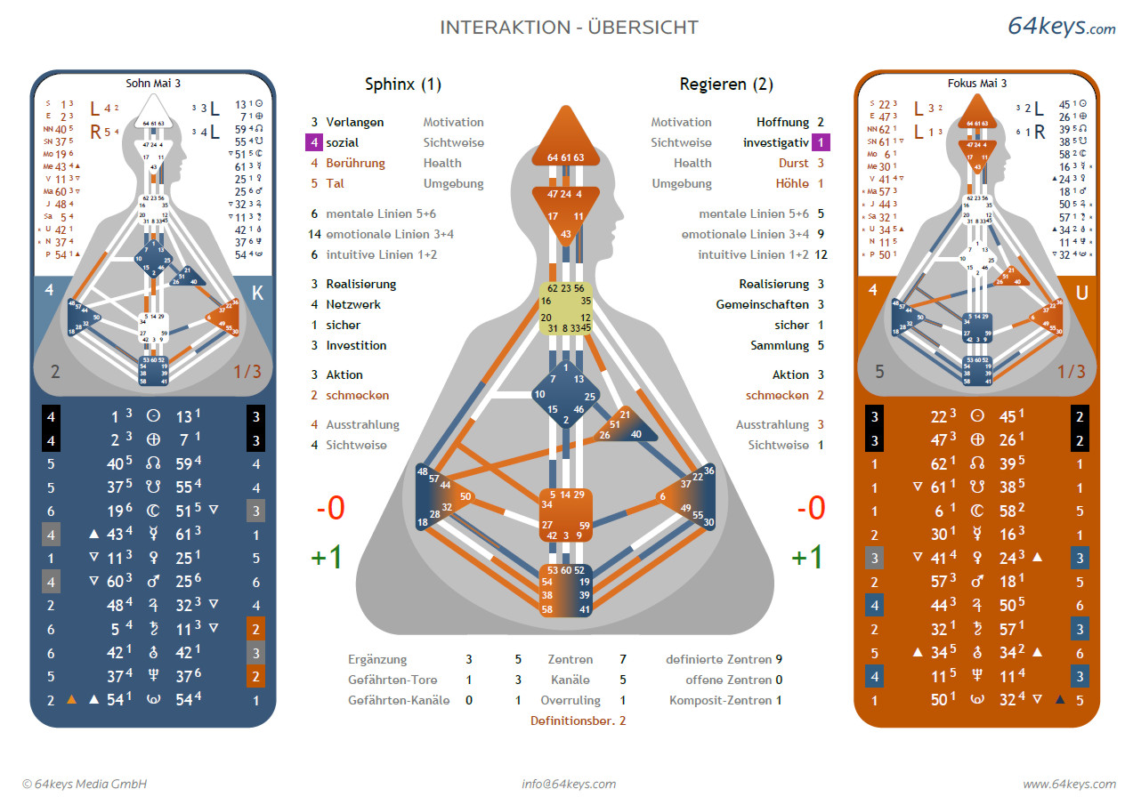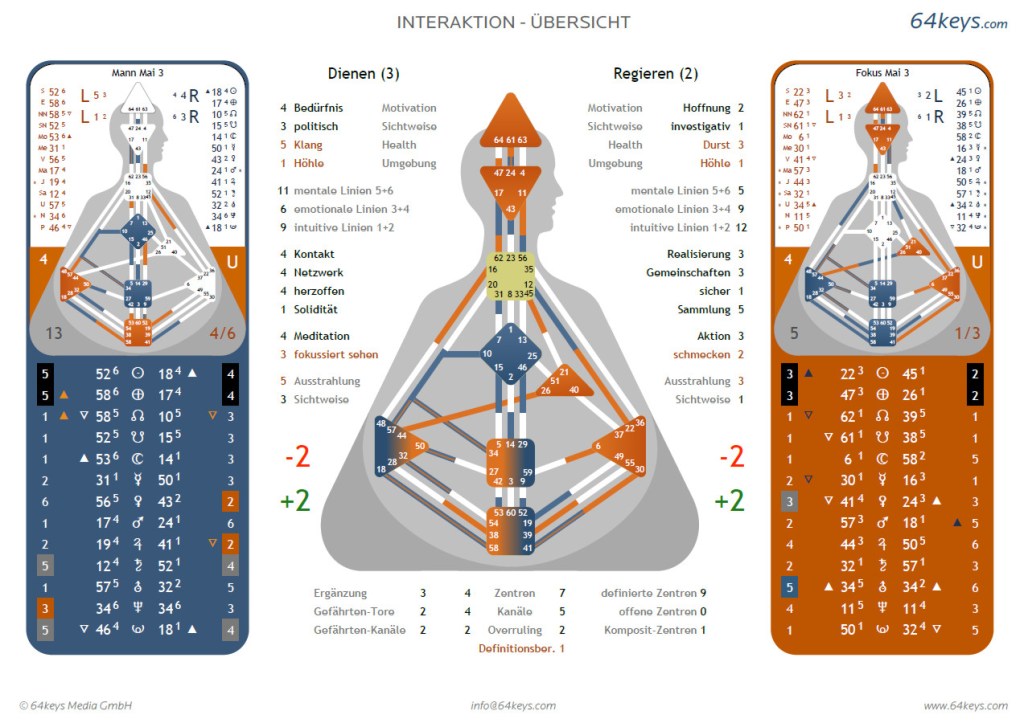 Es entstehen bei beiden Personen viele zusätzliche Definitionen – besonders im Bereich WurzelZentrum (materieller und existentieller Druck & Erdung) – MilzZentrum (Körpereigene Intuition & Ängste) – EmotionalZentrum – aber auch HerzZentrum (Willensstärke).