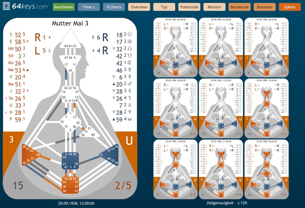 *) Hier haben wir die Uhrzeit nicht – also hab ich mit unserer Software 12:00 Uhr mittags eingegeben +/- 12 Stunden Zeitdifferenz – und dann 9 Charts als Überblick anzeigen lassen, damit wir wissen, was über den ganzen Tag gleich bleibt – bzw. ob sich elementare Dinge ver.ändern.