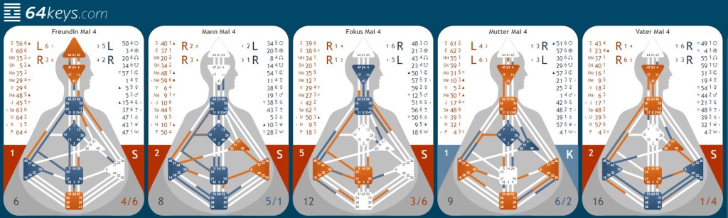 Schaut euch doch bitte mal diese Koordinatorin an – mega – 7 definierte Zentren – nur Sakral und Kopf ist offen – wobei aber auch nur 2 bewusst sind – das bedeutet, die Mutter war/ist sich ihrer Kraft wahrscheinlich gar nicht bewusst – hat sich in vielen Dingen vielleicht auch am Vater orientiert (Emo & Wurzel & Milz bei ihr unbewusst & bei ihm bewusst)