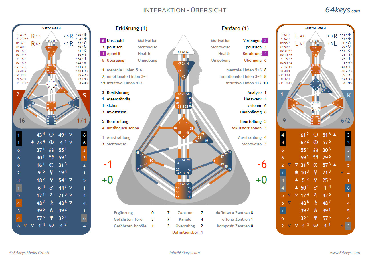 Schaut euch doch bitte mal diese Koordinatorin an – mega – 7 definierte Zentren – nur Sakral und Kopf ist offen – wobei aber auch nur 2 bewusst sind – das bedeutet, die Mutter war/ist sich ihrer Kraft wahrscheinlich gar nicht bewusst – hat sich in vielen Dingen vielleicht auch am Vater orientiert (Emo & Wurzel & Milz bei ihr unbewusst & bei ihm bewusst)