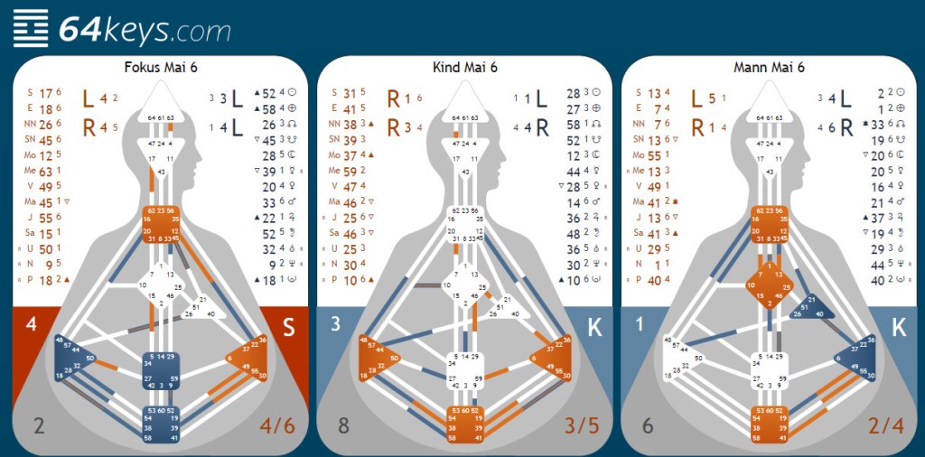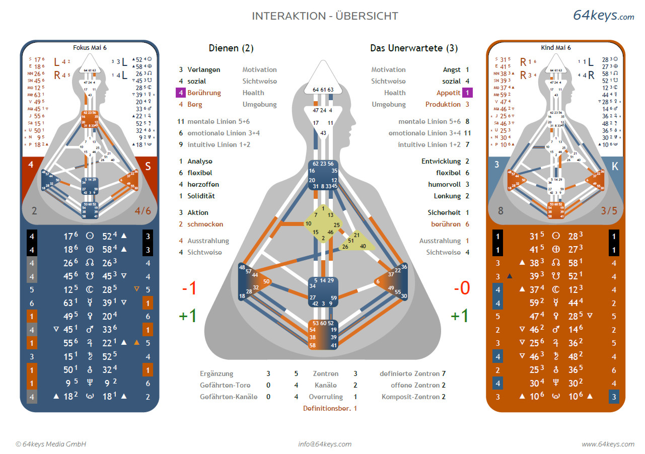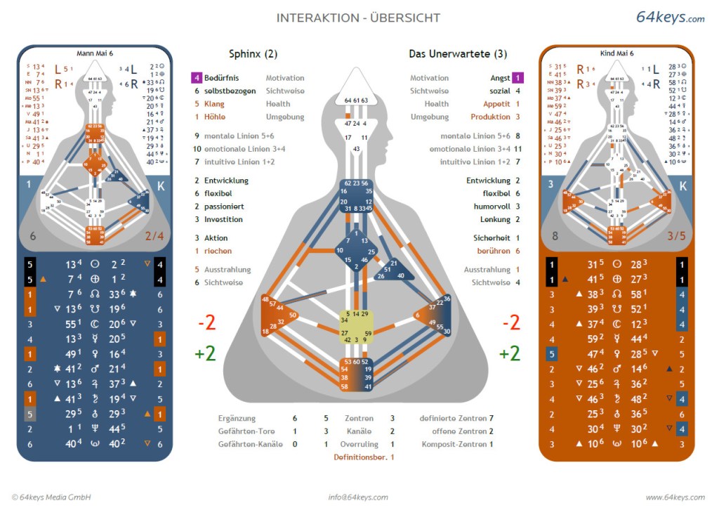 Beide haben sowohl WurzelZentrum, als auch MilzZentrum, als auch EmotionalZentrum definiert, von daher gibt es da mal eine solide und stabile geerdete Basis. Beim Kind war es das dann auch schon mit definierten Kanälen.