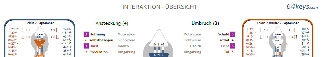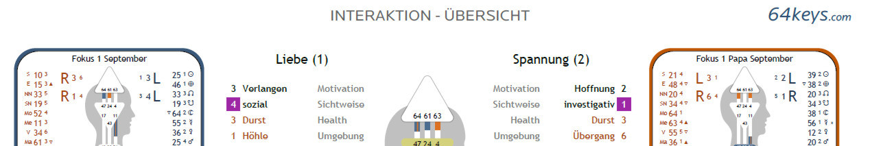 und auch in Bezug auf Profile harmonieren Menschen mit den gleichen Profilen – oder eben denen, die genau umgekehrt sind – ich habe zum Beispiel Profil 4/6 und kann besonders gut mit Menschen mit Profil 1/3 – und ziehe auch immer welche an mit den Profilen 2/4 und/oder 6/2.