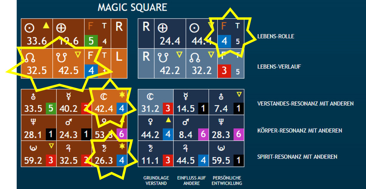 - und ganz aussen sehen wir dann die jeweiligen Farben meiner Definitionen – die entsprechen den Eintragungen im MagicSquare von voriger Woche.