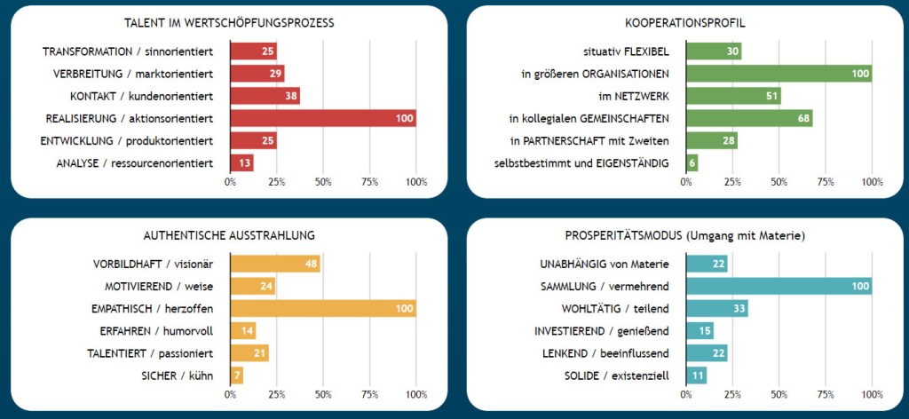 Klar, wenn du – selbstbestimmt und eigenständig – als Kooperationsprofil hast, hast du schon mal eine gute Ausgangsbasis für deine Selbstständigkeit – aber im Prinzip kannst du das auch in allen anderen Positionen ausleben – dann eben nicht als EinzelUnternehmerIn – sondern eben eher zu zweit – oder in einem Netzwerk – oder wie auch immer.