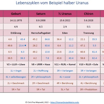 Eins vorweg – ich kenne diese Person nicht persönlich – wir haben nur ein paar Mails gewechselt – aber keinen tieferen Einblick in die bisherige LebensGeschichte – von daher – mir war nur aufgefallen, dass demnächst der halbe Uranus ansteht und hab einen anonymisierten BlogBeitrag angeboten – weils grad so hervorragen zur grundsätzlichen Thematik – … Mehr Halber Uranus an einem praktischen Beispiel