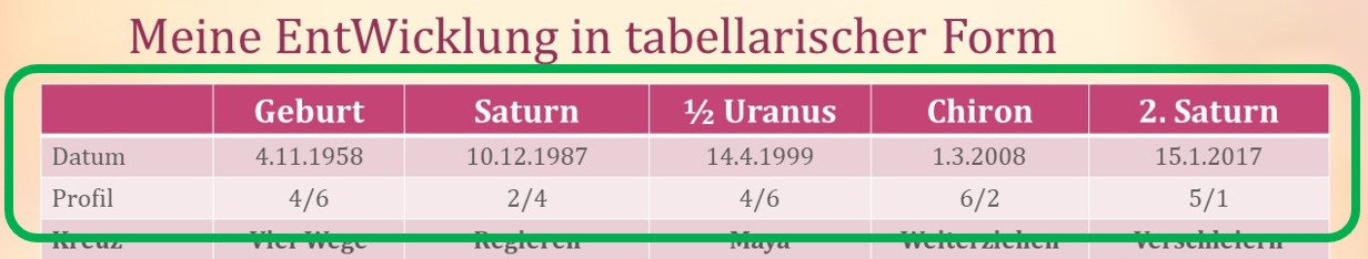 Ich werde dir heute – und in den nächsten Beiträgen – einige dieser Details anhand meiner persönlichen Veranlagung – und auch Erfahrung mit den bisherigen LebensAbschnitten – etwas näher vorstellen – du erinnerst dich an meine Tabelle von voriger Woche?