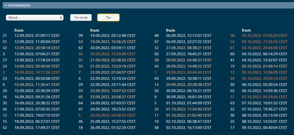 Bisher konnte man sich die aktuellen Transite anschauen – ich hab für das Beispiel eingegeben 12.9.2022 um 11:11 Uhr