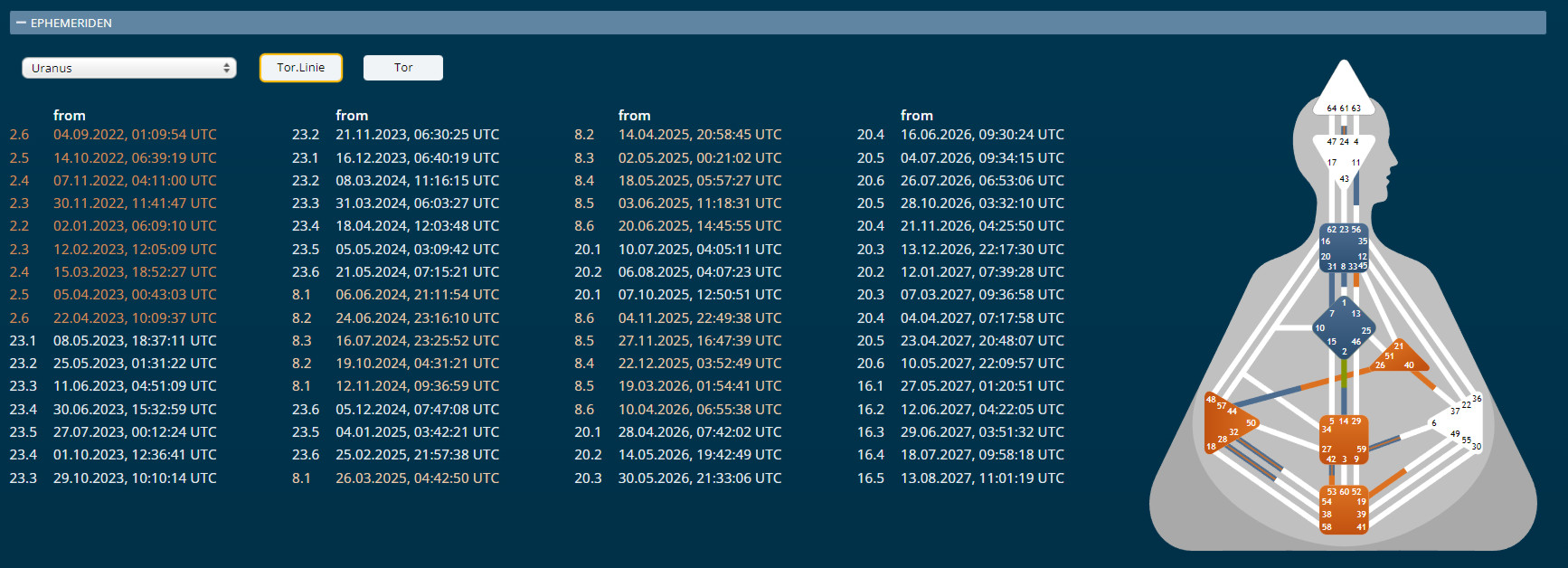 Das ist n mega ge(n)i(a)les Teil – weil wir uns damit genau anzeigen lassen könnten, wann bestimmte Planeten das Tor – und/oder – auch die Linie wechseln:
