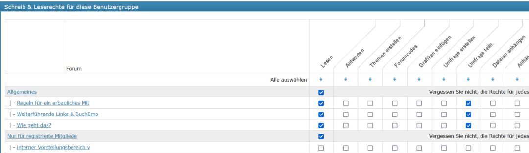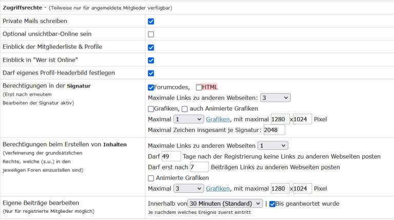 Auch bei den Zugriffsrechten gibt es Unterschiede, was aber auch wieder klar ist, weil Gäste können eben keine Signatur erstellen, weil sie nicht registriert sind – und sie können auch keine Bilder in Beiträge einfügen, weil sie ja auch nicht kommentieren können – von daher – exklusiv für registrierte Mitglieder deren