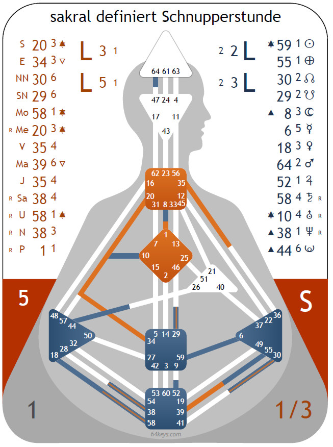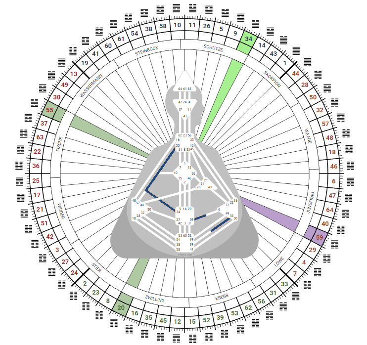 Kommen wir hier gleich mal zu der ausführlichen Beschreibung aus 64keys – welche du entweder im Dictionary ebendort nachlesen kannst – auch, falls du nur einen kostenlose Zugang zur Software hast – oder auch, wenn du dir „Das blaue I-Ging“ = die Beschreibung aller Tore in allen Linien und allen TriggerExtreme – kostenlos herunter lädst.