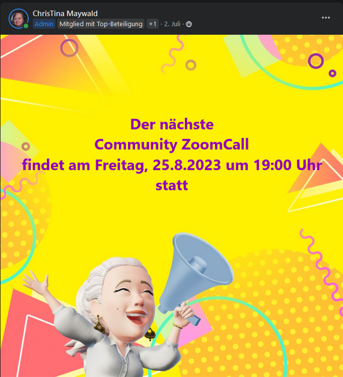 Mir geht es – speziell auch in den monatlichen Calls – um einen gemeinsamen ErfahrungsAutausch – ich stelle euch mein gesammeltes Wissen zur Verfügung – wer daran partizipieren möchte, ist gerne willkommen 😉