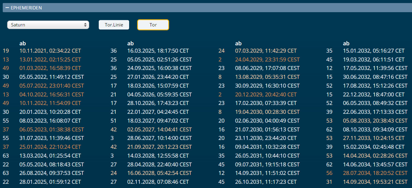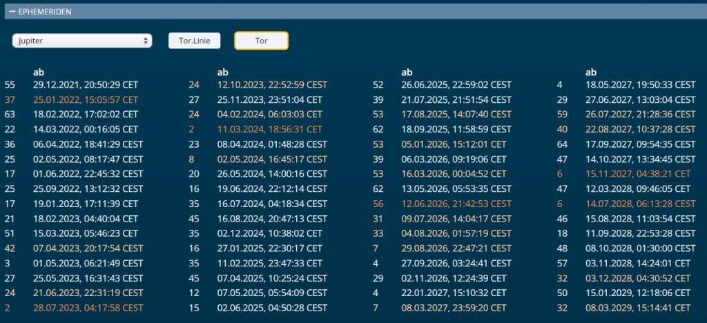 Hier auch noch die Ephemeriden seit 2022 für die Langläufer: