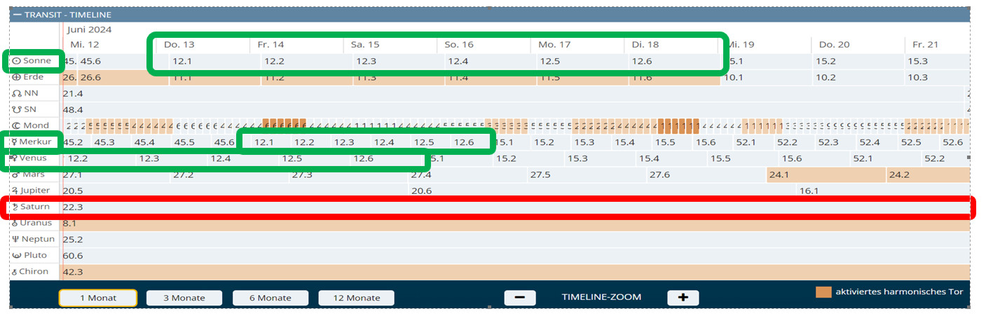 Ich hab dir in grün eingezeichnet, welche Planeten von wann bis wann im Tor 12 verharren 😉