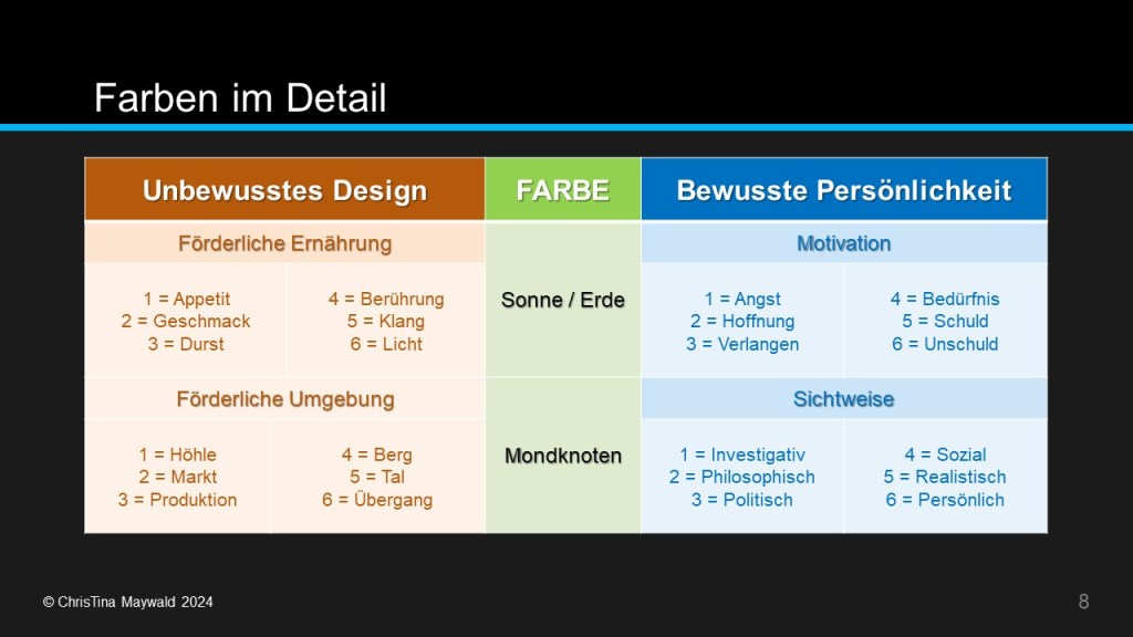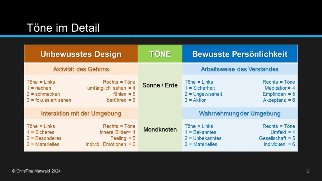 Wenn wir jetzt auch noch die Töne mit dazu nehmen – vor allem aus der bewussten Sonne – dann geht es von Sicherheit zu Akzeptanz – anders gesagt – sobald wir beginnen können, die Transformation zu akzeptieren, können die Angst und das Sicherheitsbedürfnis ihren Schrecken verlieren.