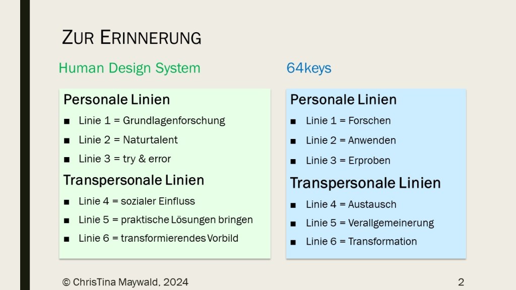 Wobei es mir hier geht, ist, dass nicht nur die Tore von Linie 1 in Linie 6 wechseln, sondern auch die Farben und Töne. Nachstehend eine Folie aus dem Video zu den Linienqualitäten in Bezug auf die Profile – aber du kannst diese auch generell so sehen.