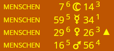 Meine Mondknoten sind 4 verschiedene Zahlen, also 18.3 und 6.6 südlicher Mondknoten und 17.3 und 36.6 nördlicher Mondknoten. Damit hab ich dann die doppelten Themen oder wie?
