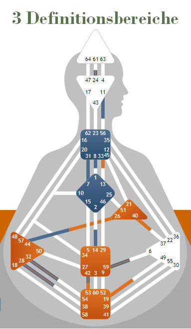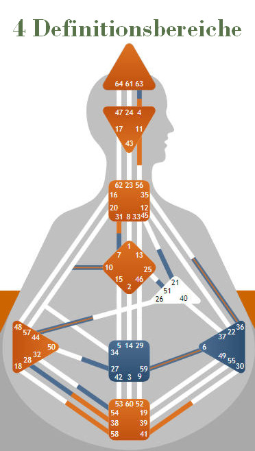 Dann gibt es sogenannte Splits, d.h. es gibt zwei Definitionsbereiche, die dann aber nicht mit einander verbunden sind. Menschen mit derartigen Splits sind oftmals auf der Suche nach anderen Menschen, welche ihnen diese sogenannten Brückentore verbinden, damit sie sich irgendwie „ganzer“ fühlen können