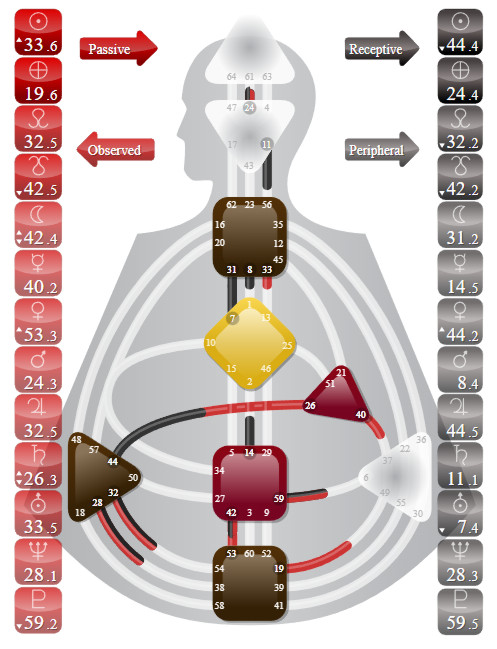 Jedes Zentrum, jeder Kanal und jedes Tor hat eine bestimmte Bedeutung und zeigt an, wie die Energie im Körper des Individuums fließt. Grundsätzlich fließt sie immer zur Kehle – entweder von unten nach oben – oder auch von oben runter: