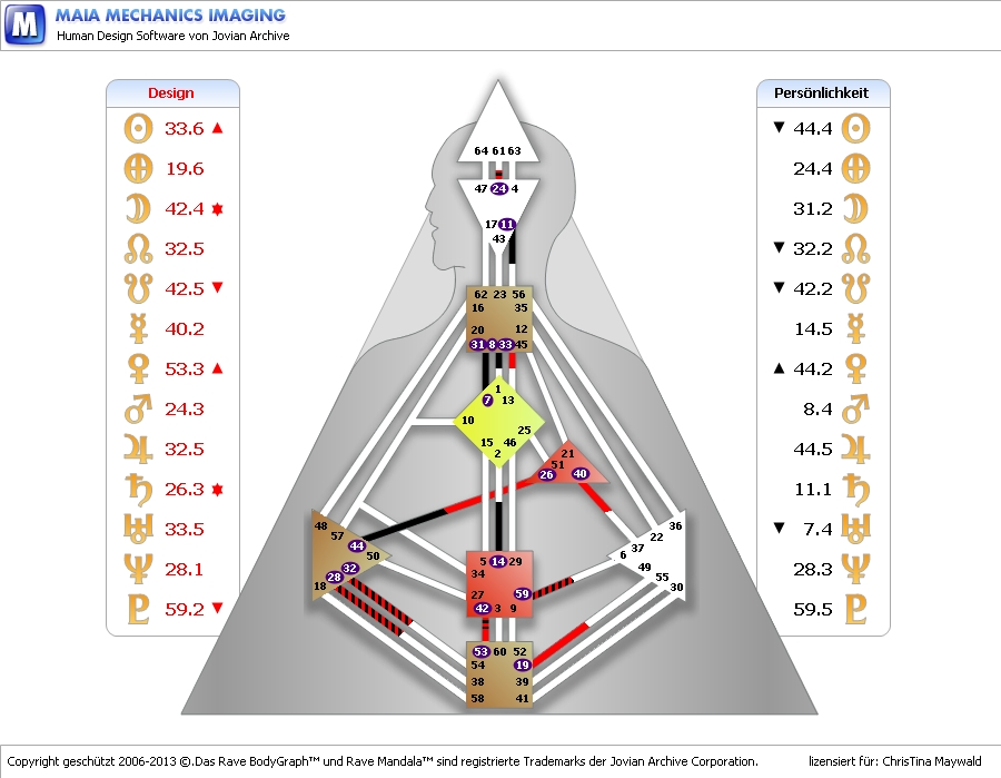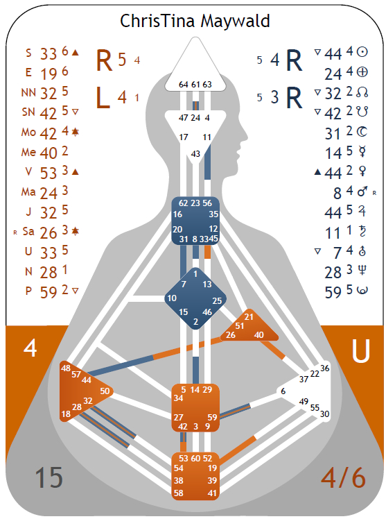Es ist auch die Fähigkeit, Dinge zum Abschluss zu bringen, damit ein neuer Zyklus beginnen kann. Wenn eines nach dem anderen erledigt wird und man zurückblickt, erkennt man, dass etwas gewachsen ist und eine Vollendung stattgefunden hat. Tor 42 ist der „Finisher“, der das zu Ende bringt, was in der 53 begonnen wurde. Solange etwas nicht beendet wurde, fühlt sich Tor 42 nicht wohl, denn es ist gerne frei und beendet Prozesse, um offen zu sein für neue Zyklen. Dadurch entsteht die Energie, etwas zu komplettieren. Das Potenzial des Tores ist Wachstum.