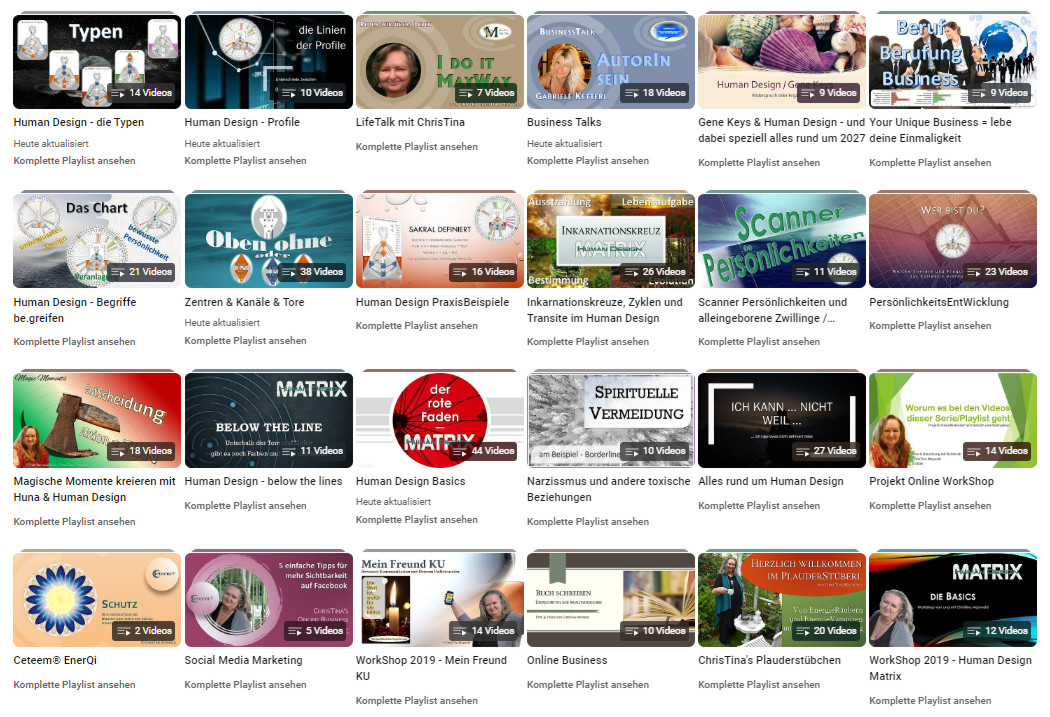 Die Kategorien und Playlists und InfoGuides sind thematisch sortiert, falls du dich also in eine bestimmte Teilthematik einarbeiten möchtest, kannst du das anhand der Kategorien, bzw. Playlists, bzw. InfoGuides.